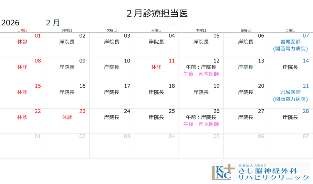 2026年2月の診療担当医は以下となります。
